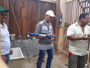 A Secretária de meio Ambiente de Espigão do Oeste Natália Martins destacou as ações da Funasa e sua satisfação em estar presente numa ação que parece simples, mas de grande relevância para a melhoria da saúde, por se tratar do tratamento da água em uma comunidade simples, mas participativa