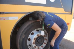 Diversos itens foram avaliados pela chefe de fiscalização do DETRAN Ana Paula, como condição dos pneus, extintor de incêndio, iluminação externa e interna, cinto de segurança e documentação dos veículos e dos motoristas.