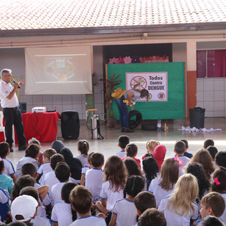 No decorrer da semana, uma importante ação foi realizada nas escolas da rede municipal de ensino, contanto com o apoio da Secretaria Municipal de Educação, com a finalidade de conscientizar os estudantes sobre a importância dos cuidados preventivos contra a dengue.