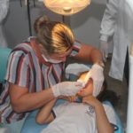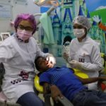 Procedimentos como restaurações foram enviados para uma segunda equipe, que trabalhou no espaço cedido pela Clínica Ortho Implante, pela Dra. Delma e Dr. Geraldo Cezar, sendo supervisionados pela professora Zilanda Martins de Almeida.